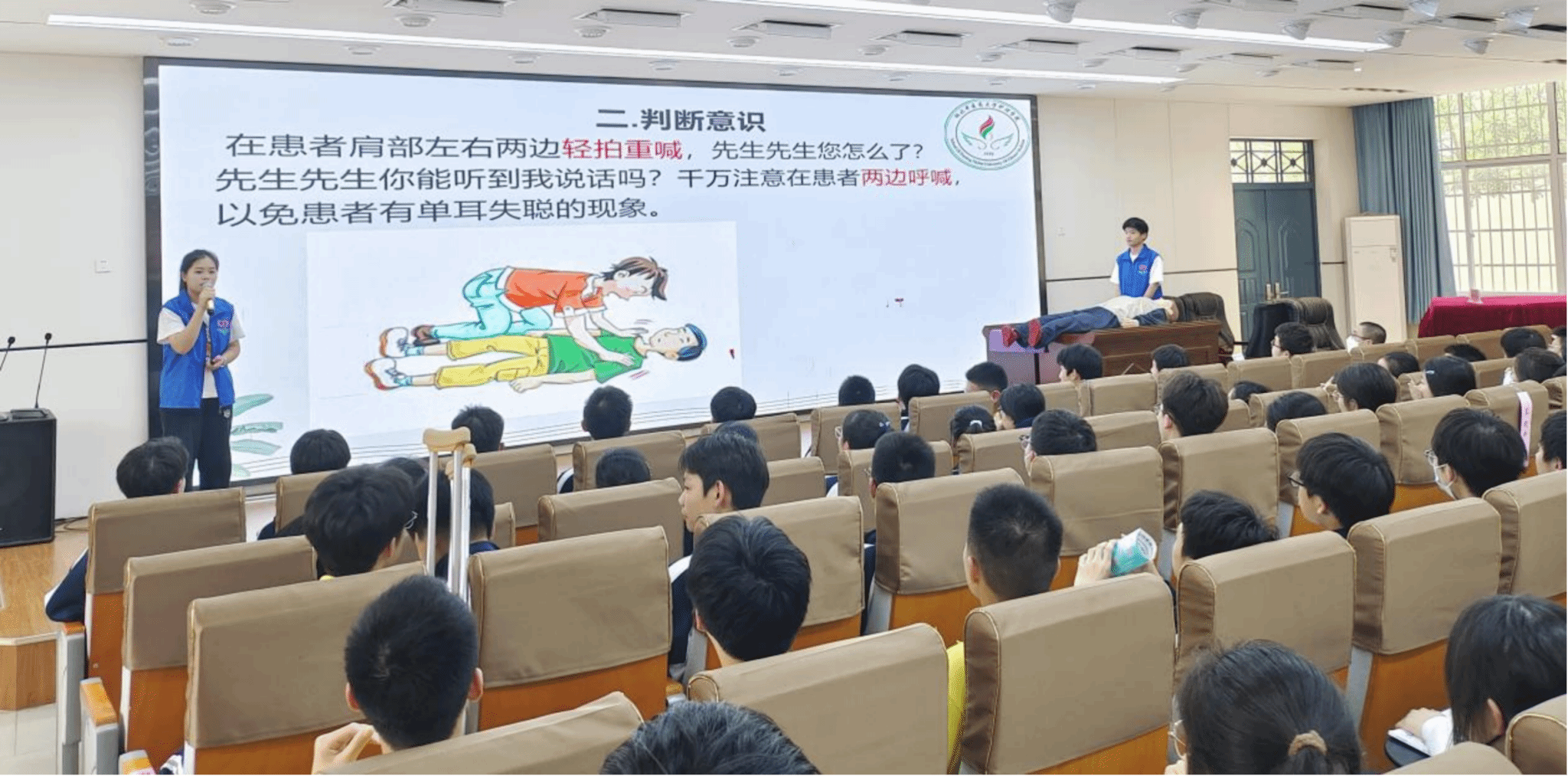 志愿者通过生动有趣的演示,围绕急救科普、穴位按摩、经络拍打等内容展开宣讲。实操环节,同学们在志愿者的指导下,学习了如何判断病人情况并有效实施心肺复苏、如何对气道异物梗塞进行自救与急救、如何通过按摩穴位缓解相应症状等急救技能,大家纷纷表示受益匪浅。