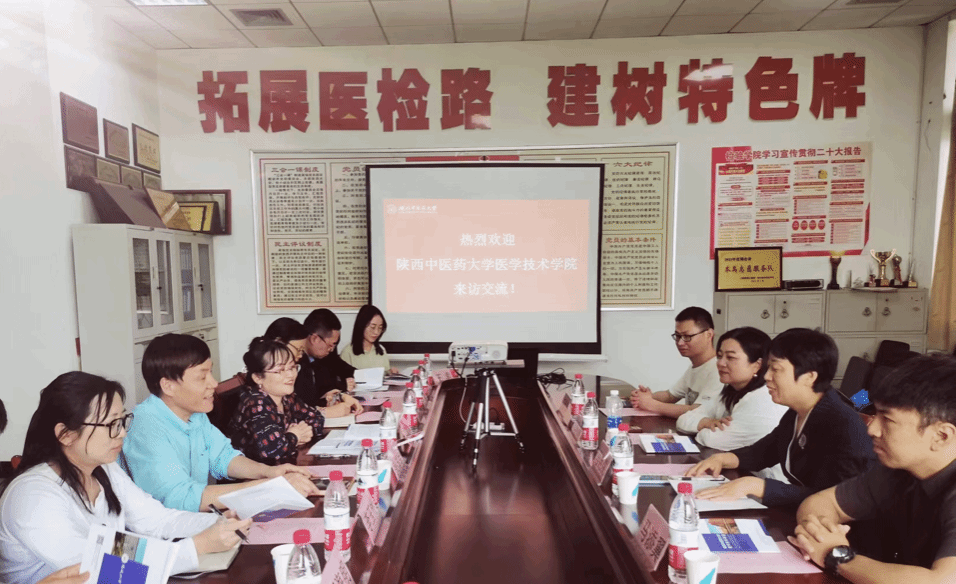检验学院党政负责人对陕西中医药大学医学技术学院一行的到来表示欢迎,并围绕办学历史、专业建设、人才培养等方面介绍了检验学院基本情况。检验学院相关负责人重点介绍了医学技术专业硕士学位点的建设经验,学院科研团队建设情况及科学研究方向等,希望下一阶段双方能以更大力度、更实举措,在交流互访、专业建设、科学研究等方面深化合作、共享资源,共同推动中医药事业发展。