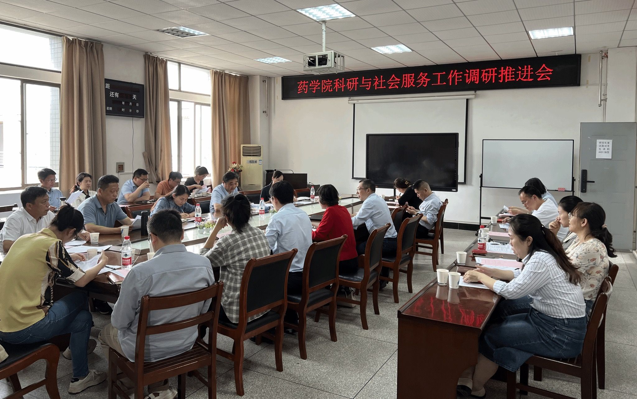 本网讯 为贯彻落实“学习提能促发展”、“正风提效抓落实”活动相关精神,深入推进“有组织科研”工作,提升药学院科学研究与社会服务能力,近日,药学院本草苑A310会议室举办药学院科研与社会服务工作调研推进会。科发院负责人,药学院领导班子成员、教研室主任、科研团队负责人、科研秘书、引进人才等参加会议。会议由药学院行政负责人主持。