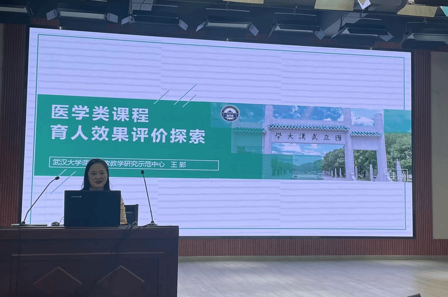王郢副教授从“武汉大学课程思政评价工作推进的一些做法”“医学类课程中课程思政育人效果评价改进的案例”“成果梳理总结中的一些经验教训”三个方面分享了课程评价体系的建立与探索,提出要将模糊育人效果转化为清晰的刻画维度 ,以评价目标进行维度筛选,突出育人评价“一课一色”,以系统性成套评价解决方案进行课程评价建设。她指出,评价方案要紧密结合课程教学活动组织设计,突出多样化,多方面、多层次,从教学不同要素和环节延伸,全面推动以评促教全覆盖。