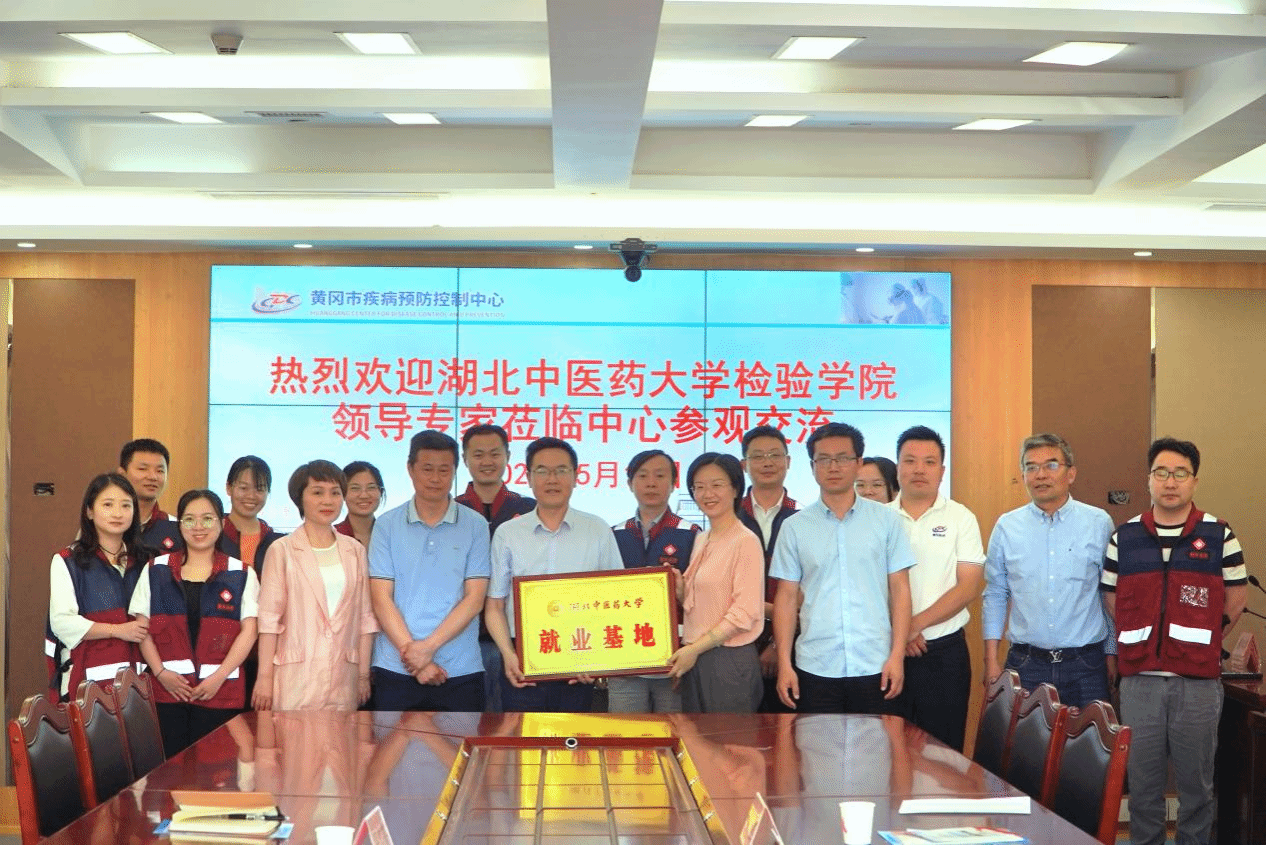 走访中,检验学院一行就科研合作、人才培养、学生实习就业等工作与相关单位开展深入交流,并为黄冈市疾病预防控制中心、黄石市疾病预防控制中心和鄂州市疾病预防控制中心颁发学校就业基地牌匾。
