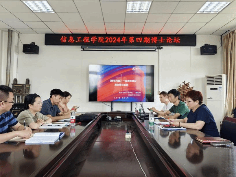 本网讯 为深入贯彻落实学校“学习提能促发展”活动要求,全面提升教师教书育人能力,提高课程建设水平,6月13日,信息工程学院在黄家湖校区思远楼5楼会议室举办2024年第四期博士论坛,邀请湖北大学数学与统计学学院徐运阁教授作题为“《线性代数》一流课程建设的探索与实践”报告。报告会由信息工程学院负责人主持,学院全体教师聆听报告。