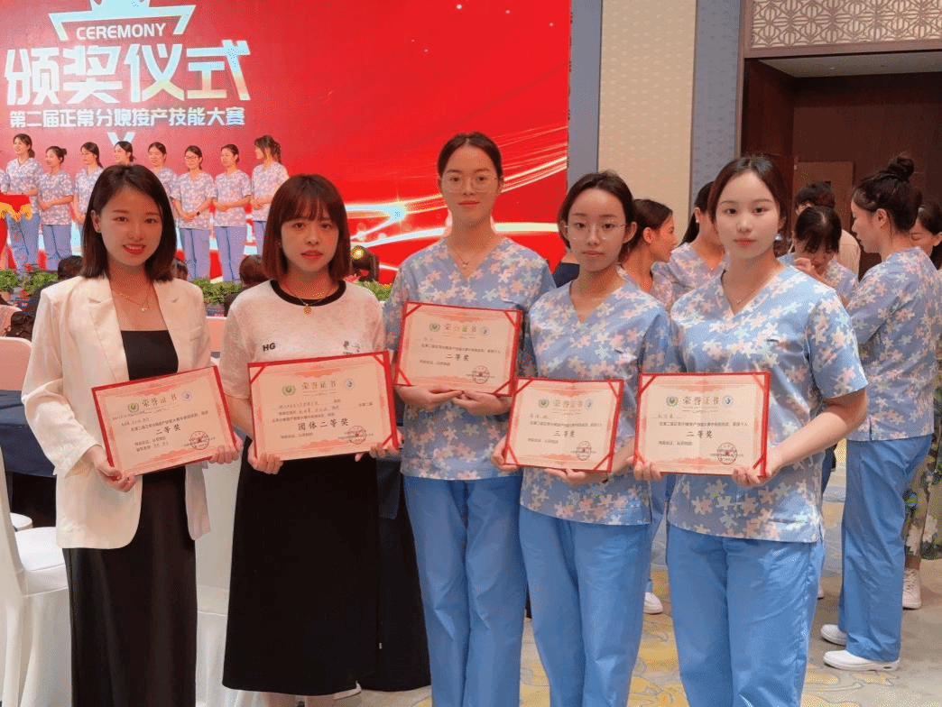 本网讯 9月2日至7日,中国妇幼保健协会第二届全国“正常分娩接产技能”大赛在苏州举行,来自全国31个省、自治区、直辖市的906名选手参赛。护理学院2021级助产学专业本科生赵雨萌、杨丹、涂冰冰3人组成的参赛队伍在比赛中荣获团体二等奖。此外,赵雨萌、杨丹荣获个人单项二等奖,涂冰冰荣获个人单项三等奖。
