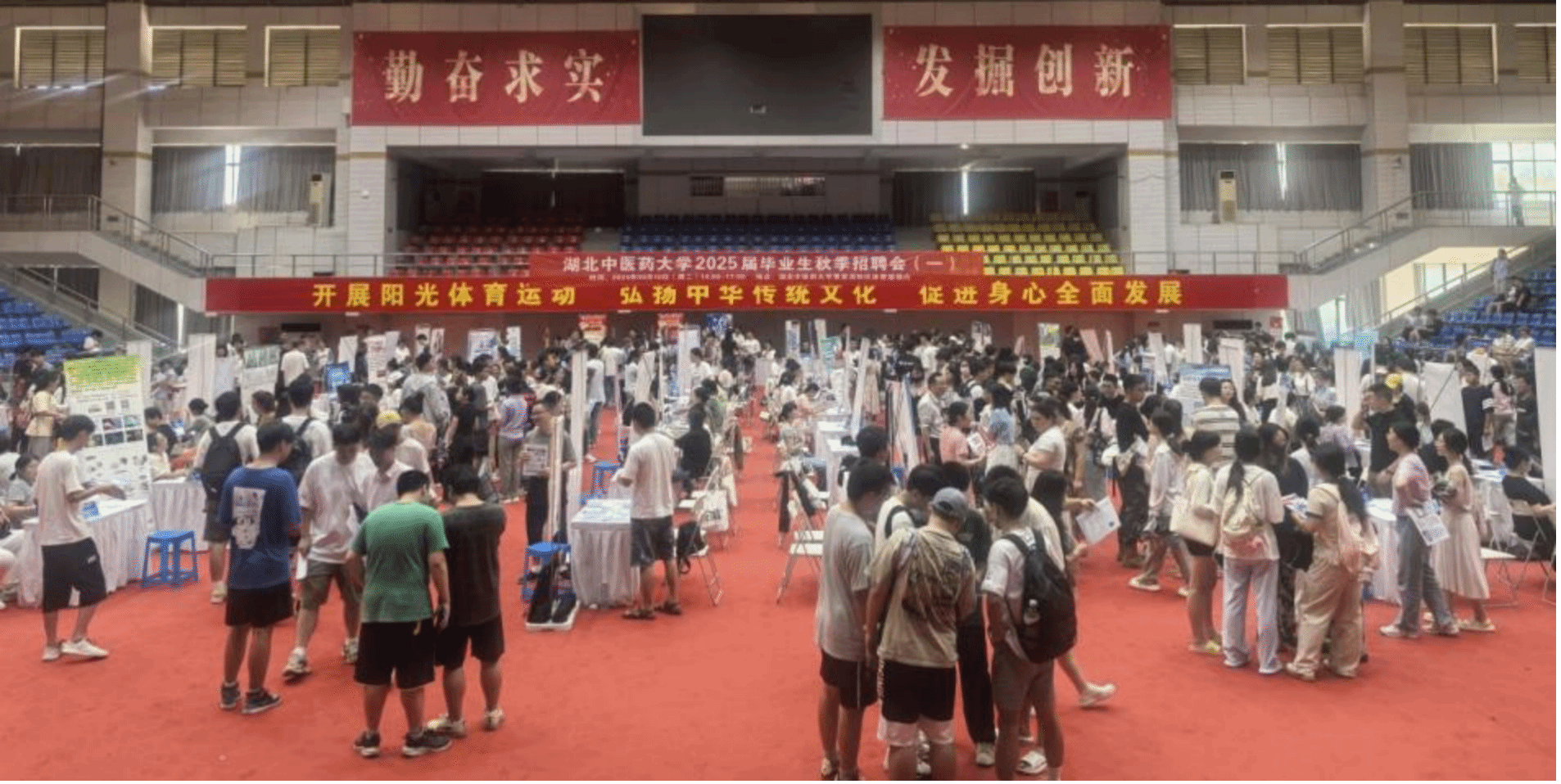 本网讯 9月10日,学校2025届毕业生秋季首场校园招聘会在黄家湖校区体育馆举行。80余家知名医疗事业单位和企业携2000余个工作岗位进校揽才。招聘会现场气氛热烈,展位前人头攒动,同学们纷纷投递简历,积极与招聘单位人事洽谈交流。