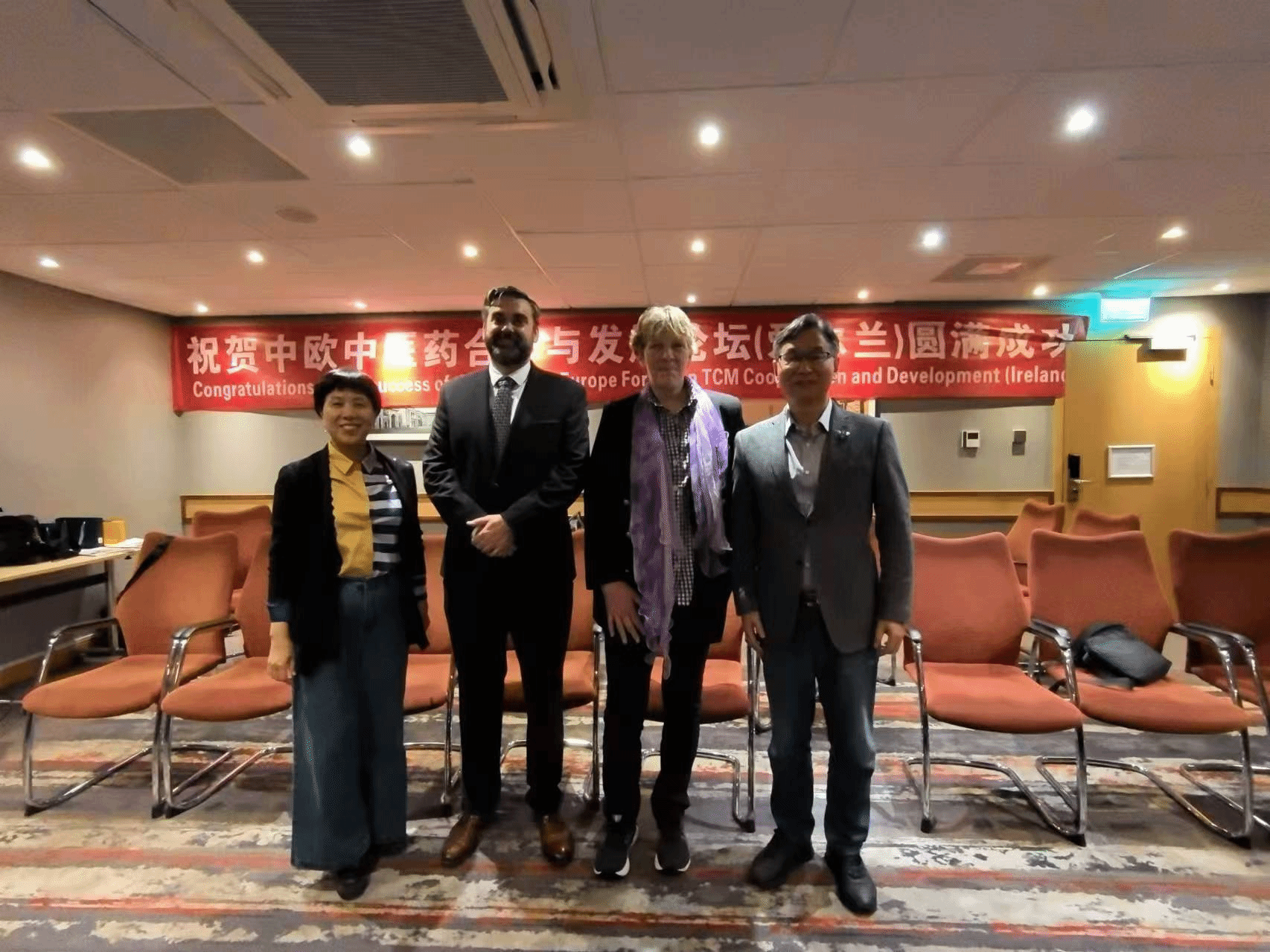 程良斌教授、胡慧教授与爱尔兰针灸基金会专业协会Shane McMunn 会长、Kathleen Dowd 秘书长合影