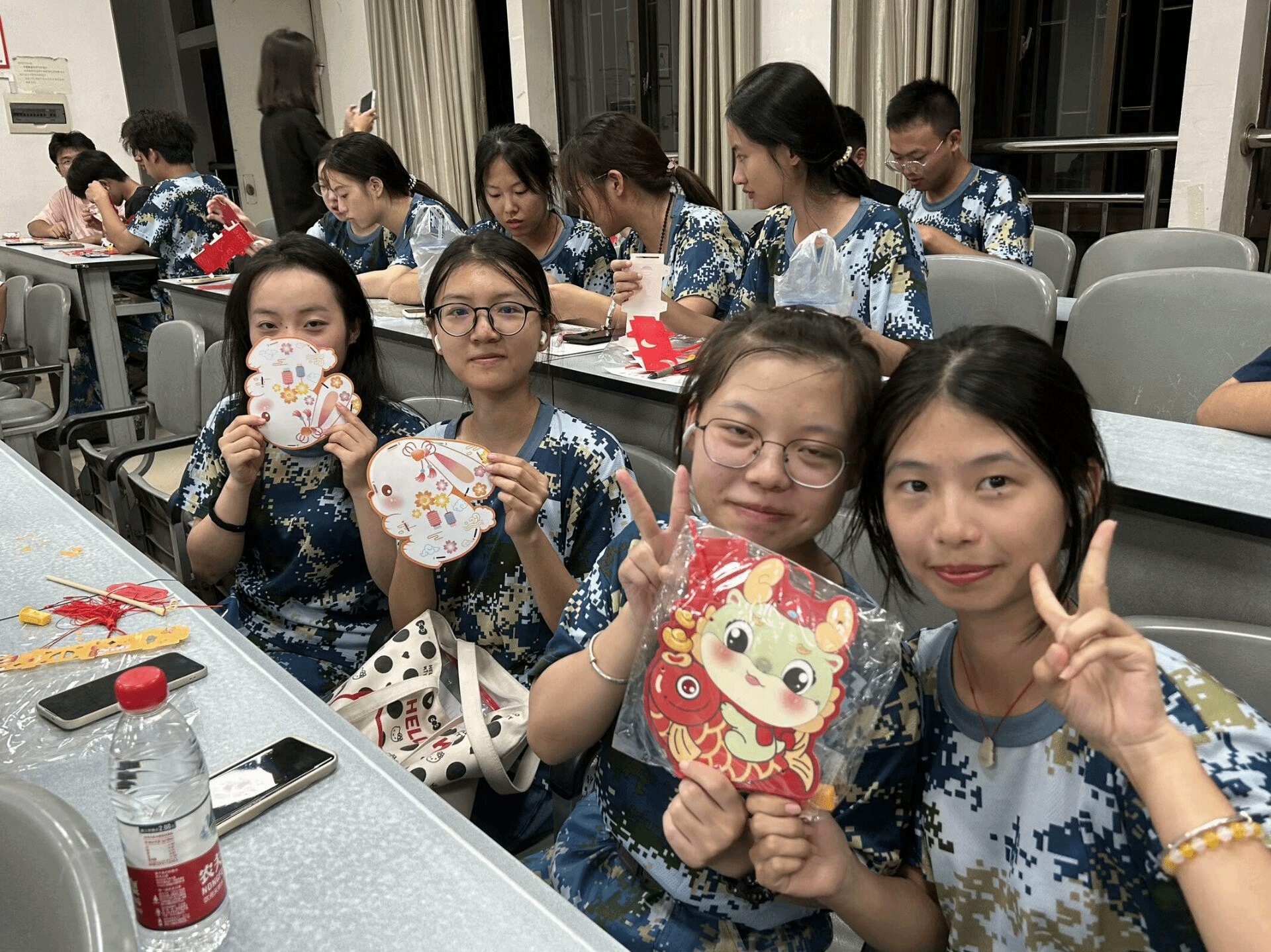 各班班级助理也来到活动现场,与新生们一起共话佳节,鼓励同学们珍惜军训时光,磨砺意志,勇敢追梦。新生们纷纷表示,通过活动,不仅增强了动手能力,更增进了彼此的了解和情谊,让大家感受到了集体的温暖和力量。