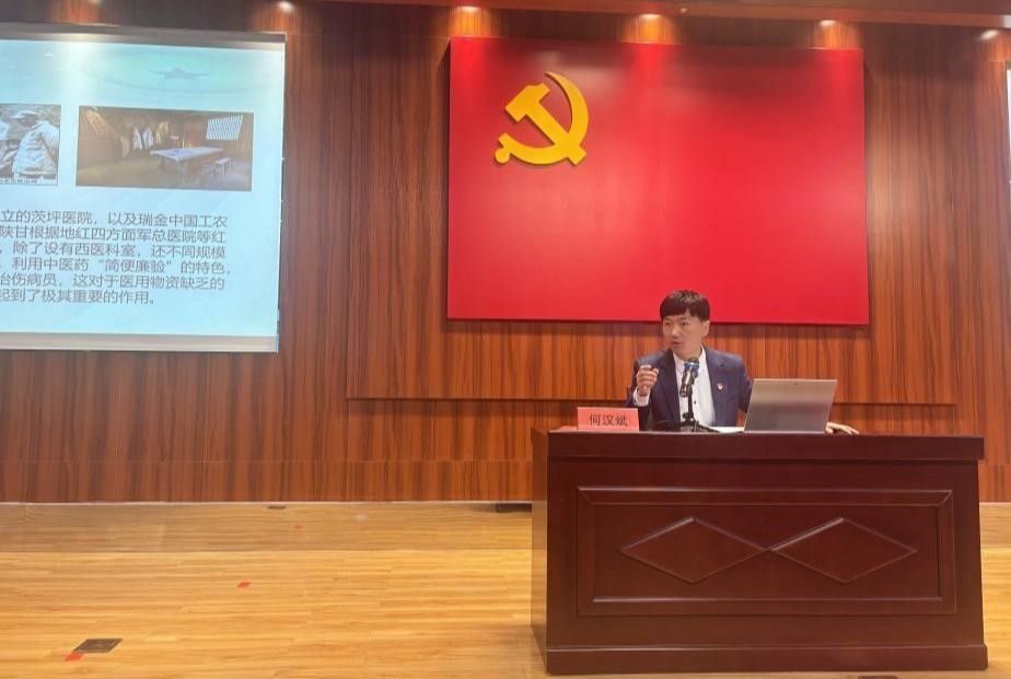 何汉斌副教授以“新民主主义革命时期中国共产党关于中医药的理论与实践”为题,从新民主主义革命时期中国共产党探索中医药服务红色革命的历程引入,重点介绍了革命年代中医药发展独具特色的“中西医结合”模式,深入探讨了马克思主义与中医药文化的内在契合点,帮助青少年进一步认识和理解马克思主义基本原理同中华优秀传统文化相结合的过程,引导学生信中医、学中医、用中医、爱中医,使古老的中医药在中国式现代化中大放异彩,为人民健康保驾护航。