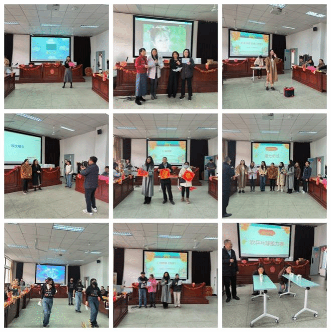 联欢会节目形式多样,精彩纷呈。法学教研室带来的歌曲《New boy》,旋律轻快、充满活力,点燃现场气氛。汉语国际教育教研室和医古文教研室联合表演的“我来比你来猜”,趣味横生。心理健康教研室带来诗朗诵《砖家》,引发大家共鸣与思考。综合办公室呈现的表演,展现出别出心裁的创意。艺术教研室老师现场挥墨,深情演唱了歌曲,为大家送上新春祝福。应用心理学教研室表演集体舞,动感的节奏与活力四射的表演展现了蓬勃向上的精气神。卫生法学教研室演唱歌曲《当》,勾起了大家的青春回忆。联欢会还设置了“逢七必过”“吹乒乓球接力赛”等游戏环节,老师们积极踊跃参与,现场气氛热烈。