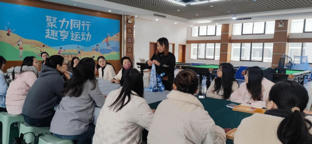 叶子老师讲解了扎染的历史渊源、文化内涵和艺术特色,并现场演示了扎染的基本技法和创作步骤。在她的指导下,女教职工们纷纷拿起工具,发挥创意,将白素丝巾通过捆扎、浸染、氧化等步骤,创作出独一无二的扎染作品。活动现场气氛热烈,欢声笑语不断,大家沉浸在创作的乐趣中,感受传统非遗文化的魅力。