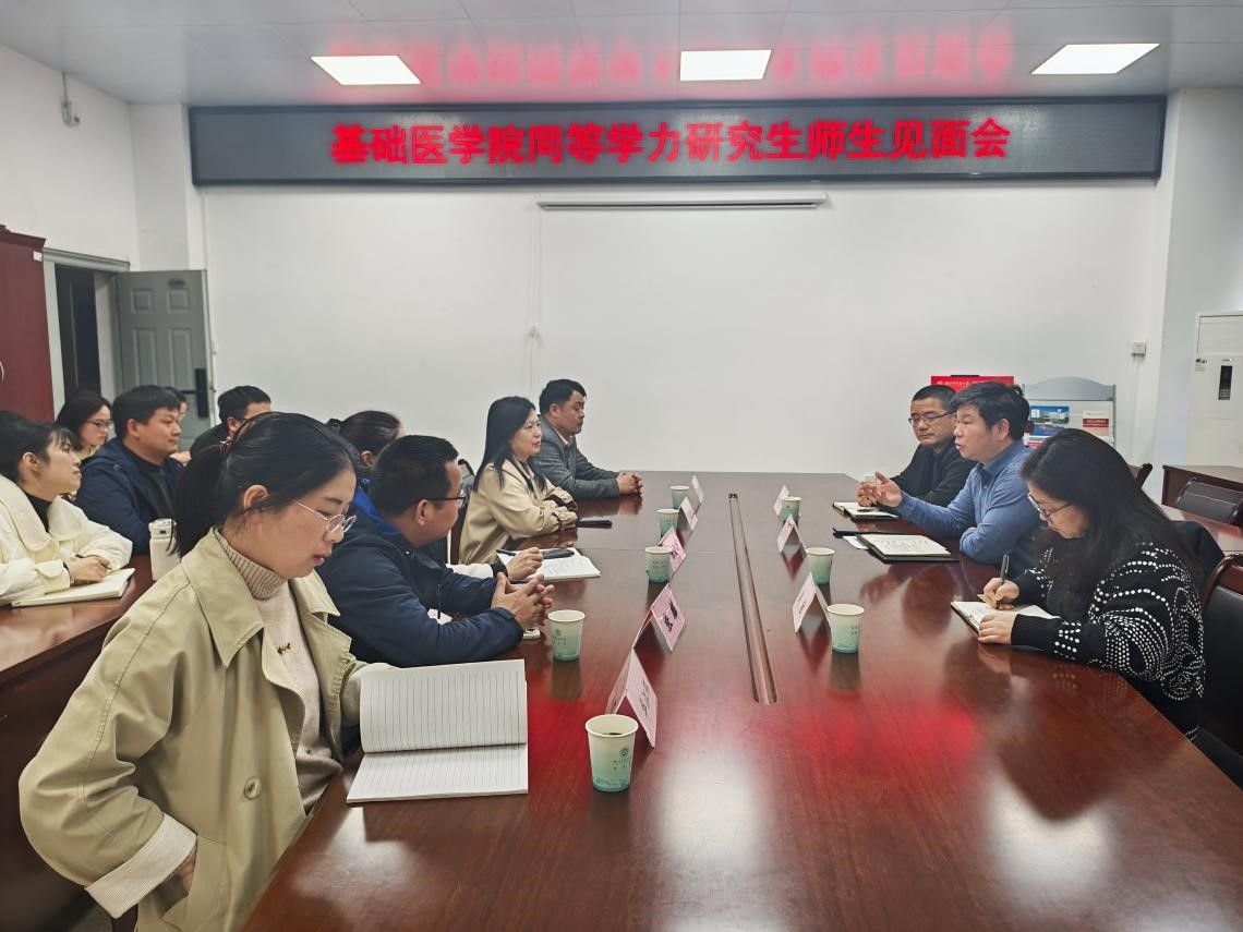 本网讯 为加强师生交流,帮助同等学力研究生顺利完成第二阶段学业,3月20日,基础医学院在黄家湖校区杏林阁D103举行同等学力研究生师生见面会。学院行政负责人、继续教育学院相关负责人、全体同等学力研究生导师及研究生参加活动。会议由基础医学院行政负责人主持。