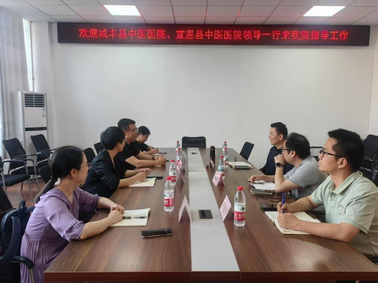 座谈会上,中医学院相关负责人对咸丰县中医医院、宣恩县中医医院一行的到来表示欢迎,并详细介绍了学校、学院整体情况,以及在人才培养、学科专业建设等方面的特色和优势,期待双方能在科研创新、医疗服务、人才招聘等方面深化合作。吴胜玉、杨兴国分别介绍了两家医院的基本情况、业务状况、人才需求以及发展规划,共同