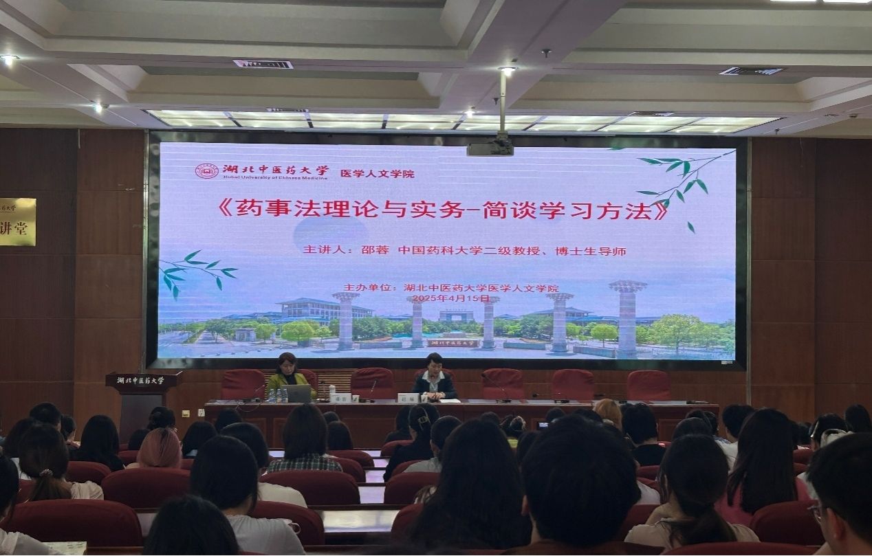 本网讯 为进一步拓展药事管理、公共事业管理(医事法学方向)等专业学生学术视野,提高思维深度与广度,近日,医学人文学院在黄家湖校区图书馆学术报告厅举办“行业名师进课堂”活动。学校特聘教授、江苏省教学名师、中国药科大学二级教授邵蓉讲授《药事法》课程。医学人文学院卫生法学学科带头人赵敏教授主持活动,药事管理、公共事业管理(医事法学方向)专业学生参加活动。