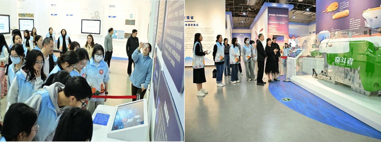 在省科技馆讲解员的带领下,师生集体参观了院士专家成果展示与转化中心。展厅集中展示了100位院士的206项科研成果,涵盖生物医药、信息技术、新材料等领域。随后,大家参观8个常设展厅,在“数理世界”中追溯数学物理的历史,重温奥斯特电流实验等物理学经典实验;在“绿水青山”中探寻地壳成型奥秘,感知千万年的地质变迁;在“生命3.0”中体味生命由单细胞到多细胞的震撼,体悟生命多样性的美妙。馆内巧妙的实验、精致的模型、精彩的互动给师生们带来一场视听盛宴。