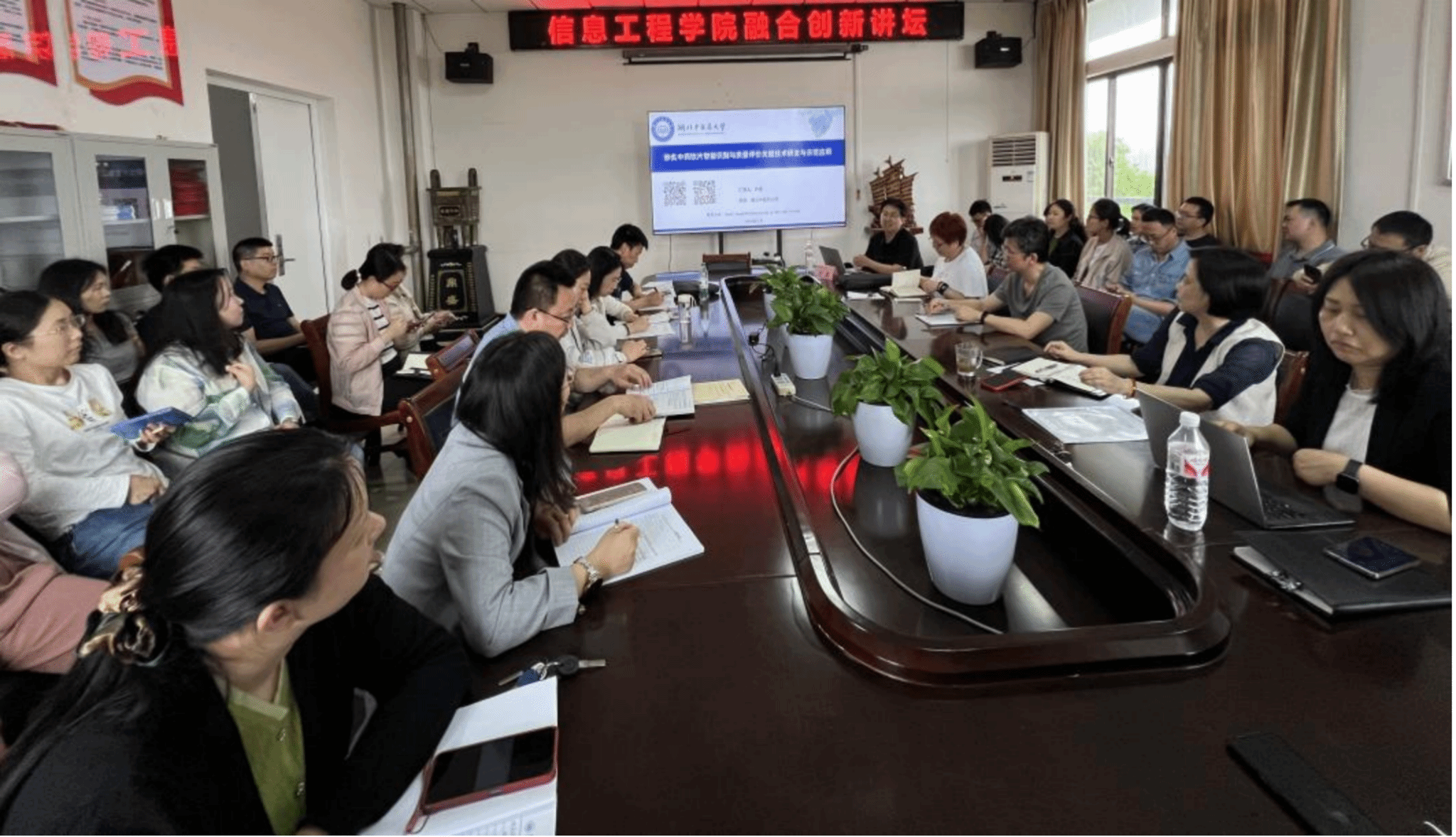 本网讯 5月8日,信息工程学院、中医药大数据知识工程研究院在黄家湖校区思远楼5楼会议室举办融合创新讲坛。讲坛主题为“人工智能赋能中药产业现代化”,邀请药学院许康教授作题为“炒炙中药饮片智能识别与质量评价关键技术研发与示范应用”的学术报告,学院全体教师聆听了报告,学院行政负责人主持报告会。