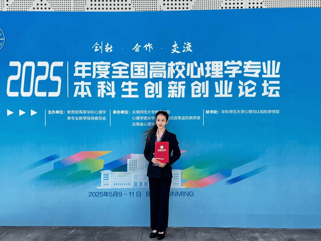 本网讯 近日,由教育部高等学校心理学类专业教学指导委员会主办的“2025年全国高校心理学专业本科生创新创业论坛”在云南师范大学举行。本届论坛设有心理学实验设计、现实问题解决、心理学产品设计和心理科普短视频4个分论坛,收到来自清华大学、北京师范大学等56所高校共计479件作品。经过专家评审、现场展示,我校医学人文学院应用心理学专业团队斩获全国二等奖1项、三等奖1项。