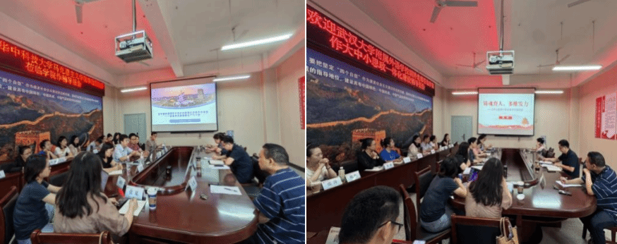 本网讯 6月27日,学校在黄家湖校区文华楼5楼会议室举行大中小学思政课一体化建设专题讲座暨思想政治理论课教学展示活动,邀请首届全国高校思想政治理论课教学展示特等奖获得者、华中科技大学马克思主义学院副院长李建国教授,武汉大学附属外语学校道德与法治教研组长、中学高级教师胡婷作为主讲嘉宾。讲座由马克思主义学院行政负责人主持,全体思政课教师参加活动。