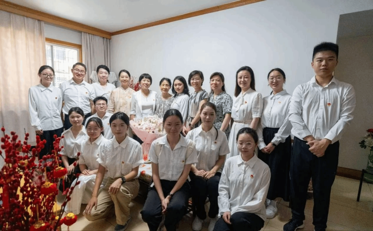 本网讯 7月1日,护理学院研究生党支部、教师第一党支部与附属医院(湖北省中医院)护理部党支部联合开展党建结对共建暨“七一”主题党日活动。党员代表前往中国共产党第十三届、十四届、十六届全国代表大会代表、全国劳动模范、87岁的护理前辈李祖珍家中,共话信仰之路,传承护理大爱精神。护理学院领导班子、教师第一党支部书记王向荣,医院护理部党支部书记、主任张小红及党员师生代表参加活动。