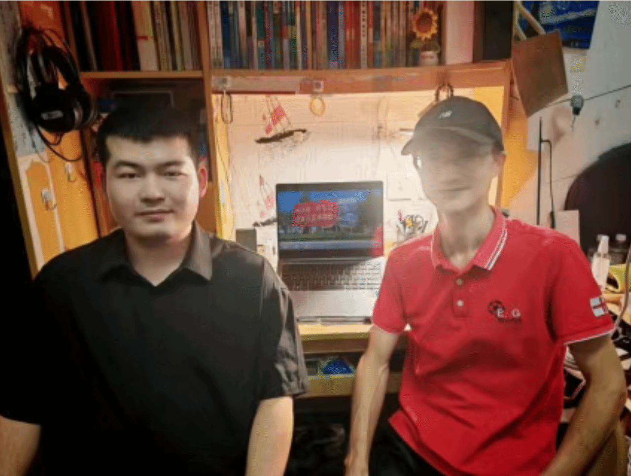与郝建军老师(右一)在宿舍谈心