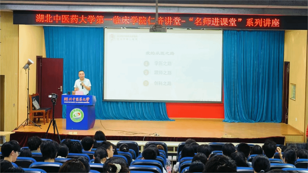 本网讯 9月25日,第一临床学院在昙华林校区学术报告厅举办第41讲仁济讲堂——“名师进课堂”系列讲座,邀请武汉市中西医结合医院血管外科主任谢沛霖教授作“我的从医之路及经方在脉管疮疡病运用初探”专题分享,200余名师生聆听讲座。