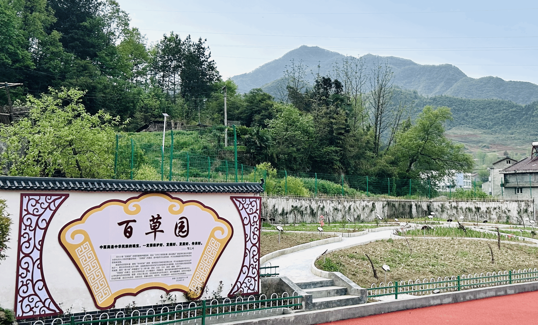 “百草园”建设紧扣中医药传统文化理念,重点开展中草药种植绿化、文化墙氛围营造、路缘石铺设、中草药植物地牌标识等建设工作。2024年1月至今,经过4个月努力,原本荒芜的河兴小学一角变成了一方生意盎然满目青翠的小园圃,平淡无奇的小天地面貌焕然一新。园内累计新种植艾草、唐菖蒲、桔梗、射干、麦冬、迷迭香等中草药植物30余种,设计文化墙1面,中草药标志牌30余块,干净、整洁又具浓厚中医药传统文化底蕴,让学生沉浸式感受中医药文化。