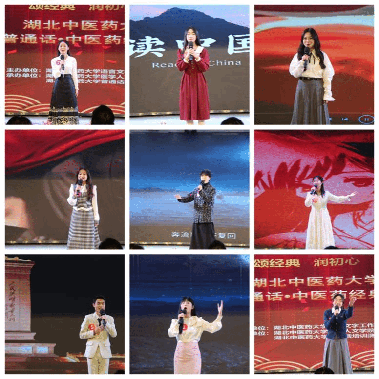 “凡大医治病,必当安神定志,无欲无求,先发大慈恻隐之心,誓愿普救含灵之苦”“我们在炮火连天的硝烟里,读怆然悲壮的中国;我们在红旗漫卷的西风里,读繁荣昌盛的中国”……展示朗诵环节中,选手们引经据典,充分展示了中华语言魅力与中医药经典著作的深厚底蕴,现场频频响起热烈的掌声。朗读结束后,刘昌慧老师、杨思佳老师分别对选手的字词音准及情感表达等方面进行了点评指导。