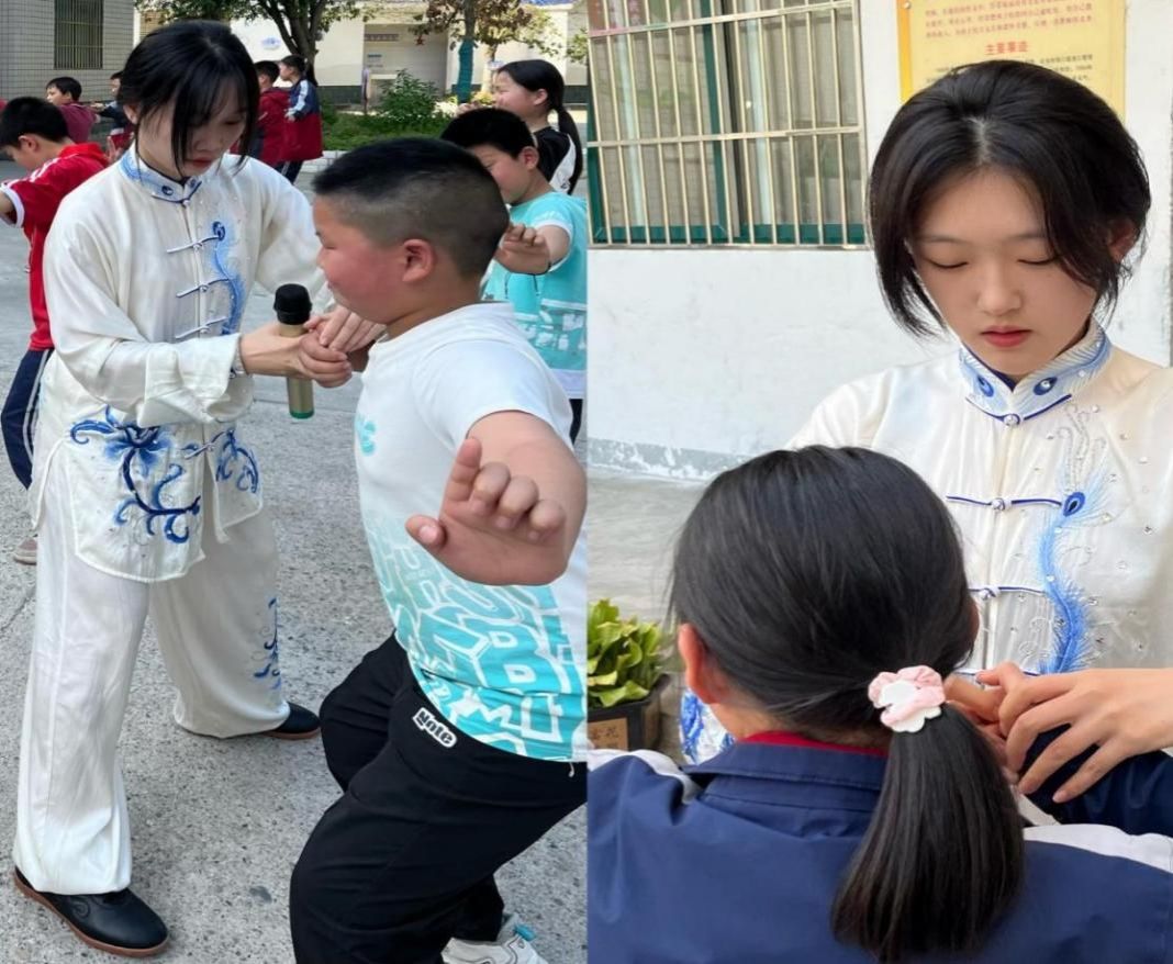 学校高水平运动员隋佳潞、谢熙雅讲解八段锦动作要领