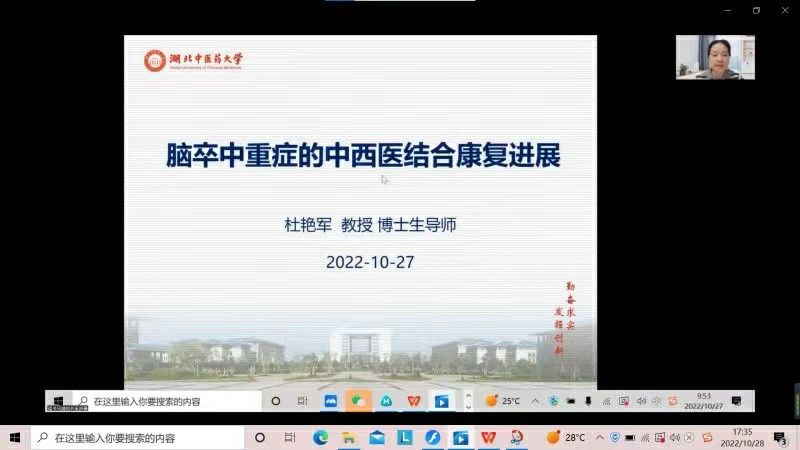 2022年10月27日,深圳市宝安区中医院为加强康复科重点学科建设,提升专科临床及科研业务水平,邀请全国名中医工作室成员进行学术交流。因深圳疫情受限,孙国杰教授、齐凤军教授、杜艳军教授分别作了《针灸治疗脑卒中的创新思路》《脑卒中后遗症激活健患侧的康复》《脑卒中重症的中西医结合康复进展》线上报告。
