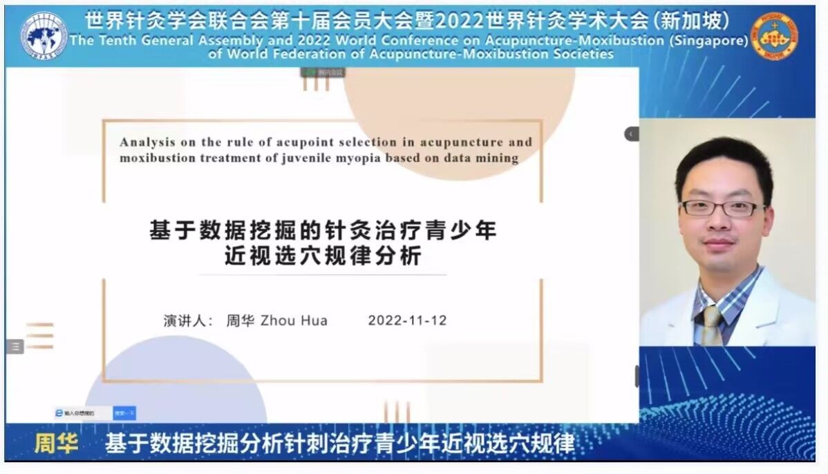 周华副教授作《基于数据挖掘的针刺治疗青少年近视选穴规律分析》主题报告