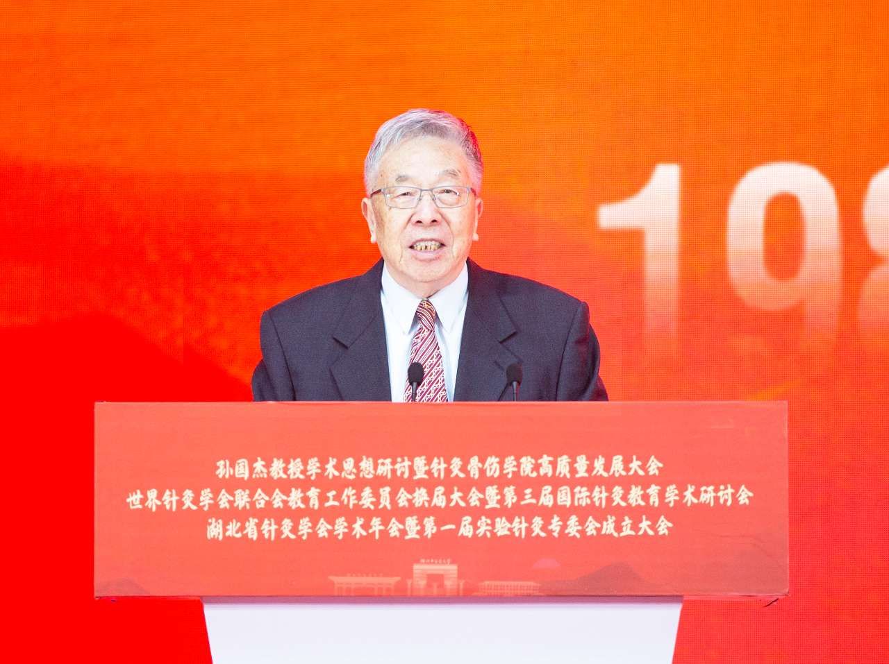 湖北中医药大学校长刘松林表示,孙国杰教授卓越的前瞻性思维、学术贡献和赤诚教育之心,为针灸特色人才培养、为学校高质量内涵式发展、为中医针灸事业发展作出了杰出贡献。孙国杰教授是全国针灸学界的宝贵财富,是中医药领域的宝贵财富,更是湖北和湖北中医药大学的宝贵财富。希望针灸骨伤学院坚持立德树人,彰显担当;坚持突出特色,争创一流;坚持“四个面向”,主动服务,充分挖掘老一辈专家学术思想,主动谋划“大平台、大团队、大项目、大成果”,推动高质量发展。