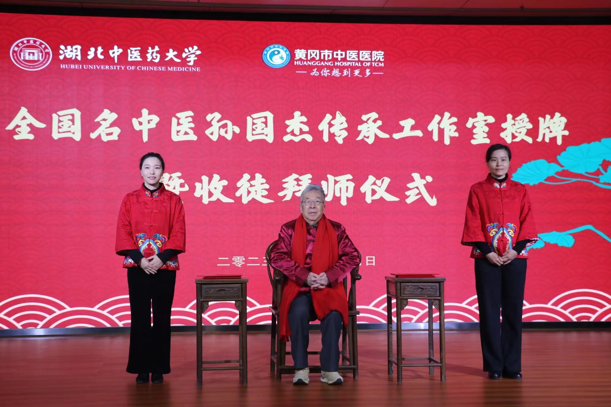 活动现场,孙国杰教授授予全国名中医孙国杰传承工作室牌匾。之后隆重举行了孙国杰教授学术继承人拜师仪式,学术继承人杨莉、刘姝君通过递交拜师名帖、敬茶、献花等环节确认了师承关系。随后,完成了工作室揭牌。标志着孙国杰教授名中医的工作室在黄冈市中医医院正式安家落户,成为传承中医药事业的重要平台,为医院学科与人才发展注入了新的活力。