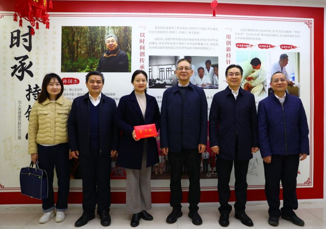 副厅长刘鸿亲切询问杜艳军教授工作和生活情况,认真听取她对中医药传承发展、科学研究等方面情况介绍,感谢她为湖北中医药事业高质量发展作出的积极贡献。交流中,刘鸿还详细了解了学校在人才培养、学科建设、创新创业、毕业生就业等方面的情况。他指出,中医药作为我国传统医学的瑰宝,其发展离不开高水平的科研创新和人才培养,要注重培养适应时代需求的创新型人才。