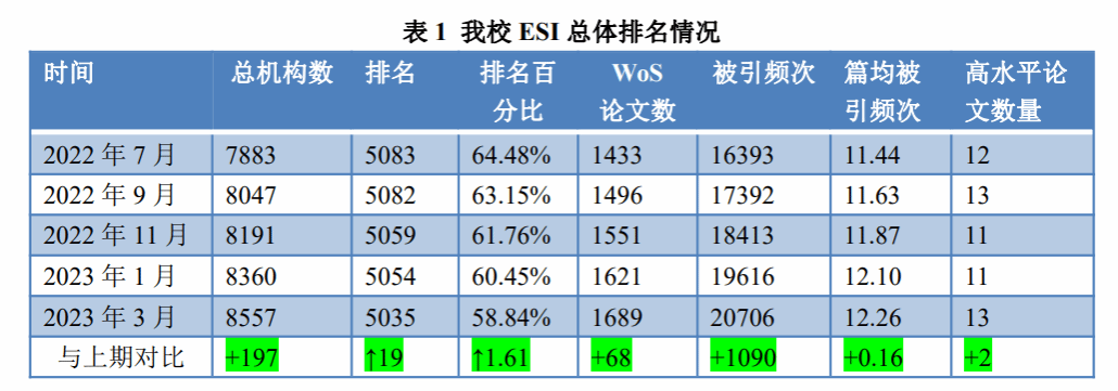 一、我校ESI学科基本情况