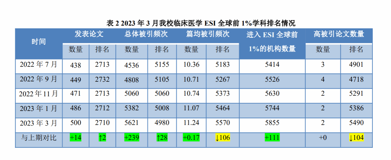 本网讯 科睿唯安2023年3月9日发布的ESI最新数据显示(数据覆盖时间范围为2012年1月1日~2022年12月31日,十一年),本期全球共有8557个机构登上ESI榜单,我校位于第5035位,临床医学保持ESI全球前1%。