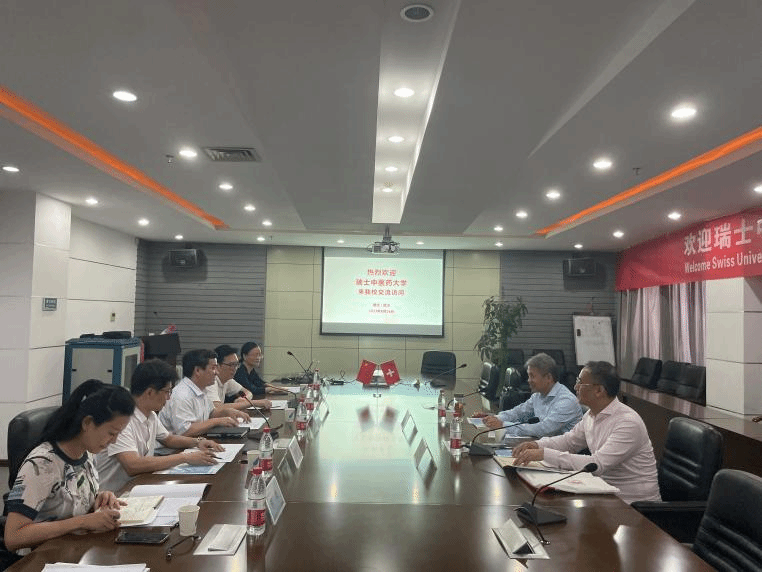 本网讯 8月16日,瑞士中医药大学(SWISS TCM UNI)瑞方校长李一明、中方校长齐凯一行应邀来校交流访问。校长刘松林、校党委常委曹继刚会见来宾,并在黄家湖校区云泽楼会议室举行座谈会,学校办公室、国际交流与合作处负责人等参加座谈。