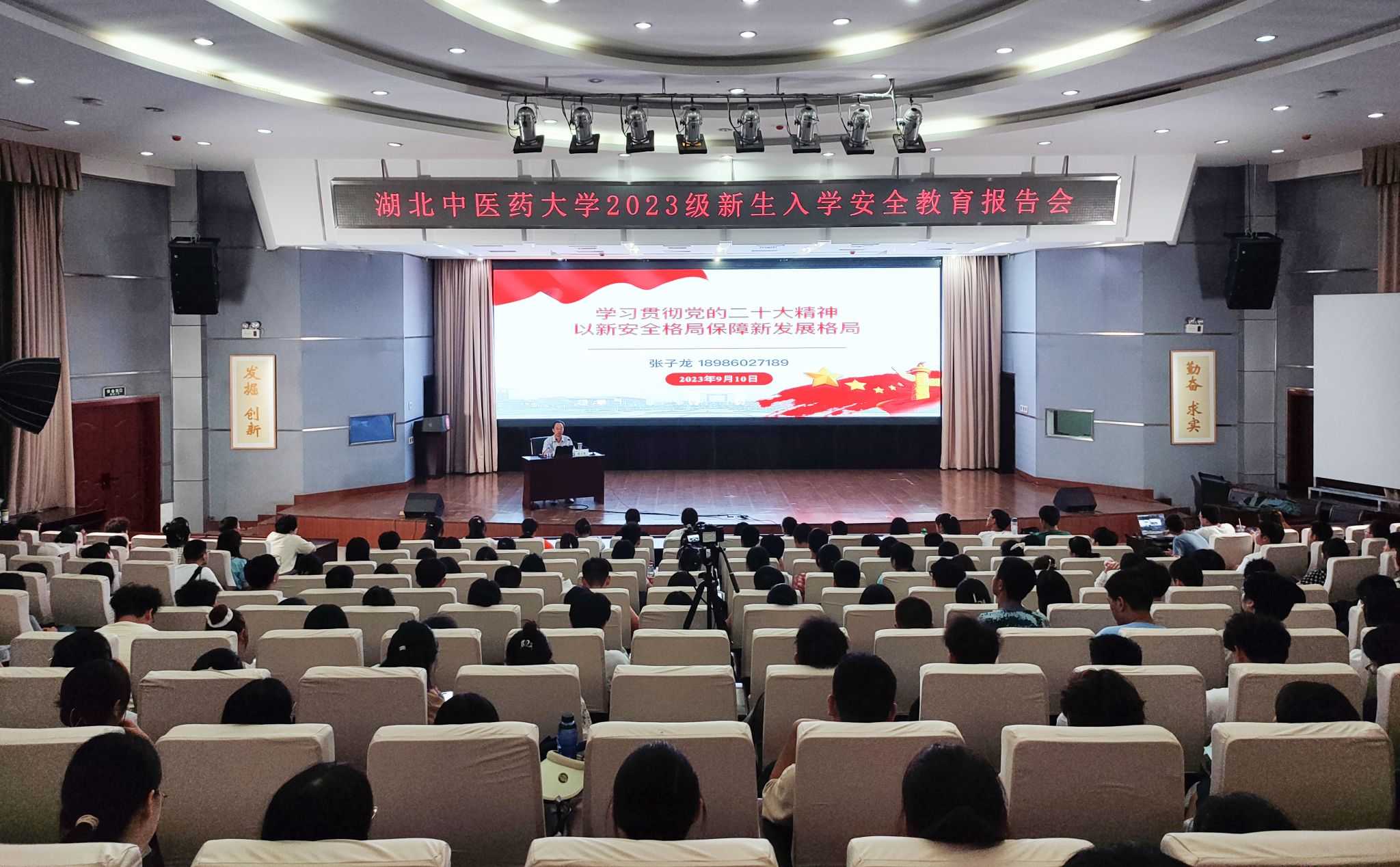 本网讯 9月10日,学校在黄家湖校区明德楼学术报告厅举行2023级新生入学安全教育报告会,校党委副书记张子龙作了题为“学习贯彻党的二十大精神 以新安全格局保障新发展格局”的报告。报告会采取线上线下同步的方式进行,学生工作部、新生辅导员和新生代表300余人现场聆听了报告,4000余人观看了直播。