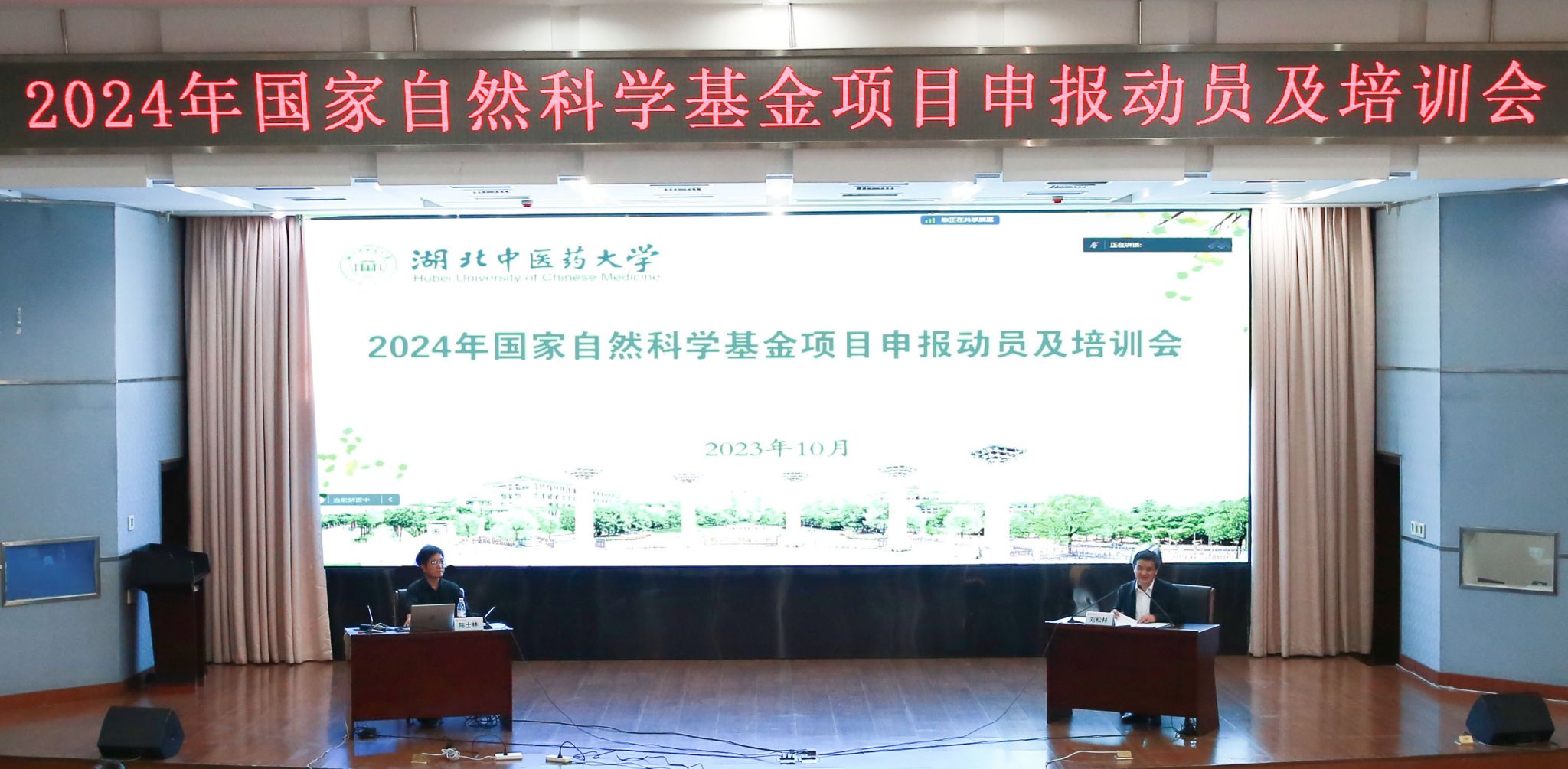 本网讯 10月31日,学校在黄家湖校区明德楼学术报告厅召开2024年度国家自然科学基金申报工作动员及培训会。会议通过线上线下相结合的方式进行。校长刘松林,校党委常委王彦春,学校各学院领导班子成员、项目申请人,附属医院科研人员,武汉市属相关中医院和各市州中医院科研人员等近500人参加会议。校长刘松林主持会议。