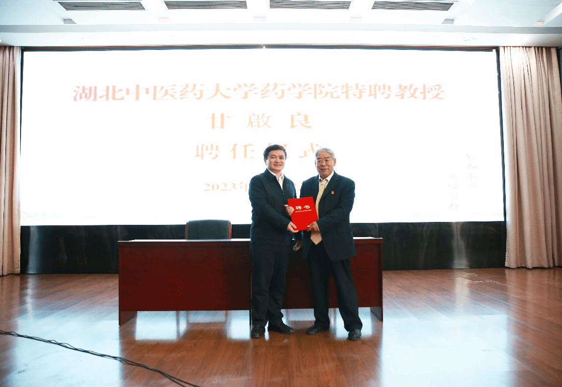 甘啟良先生是竹溪县融媒体中心退休干部、竹溪县电视台原台长、竹溪县啟良生物研究所负责人、第四次全国中药资源普查竹溪县技术负责人,获评湖北省道德模范,入选2023年第一季度“中国好人”榜。聘任仪式上,甘啟良先生表示,作为一名基层工作者,自己能受聘湖北中医药大学药学院特聘教授是一生中最大的荣誉,非常感谢学校的信任,希望能为中医药人才培养、中医药传承发展尽自己的绵薄之力。后续将根据学校要求和学科发展需要,配合做好青年教师培养、研究生实习实训、促进科研合作等三方面工作,认真履行特聘教授职责,以实际行动和成果回馈学校、回馈社会。