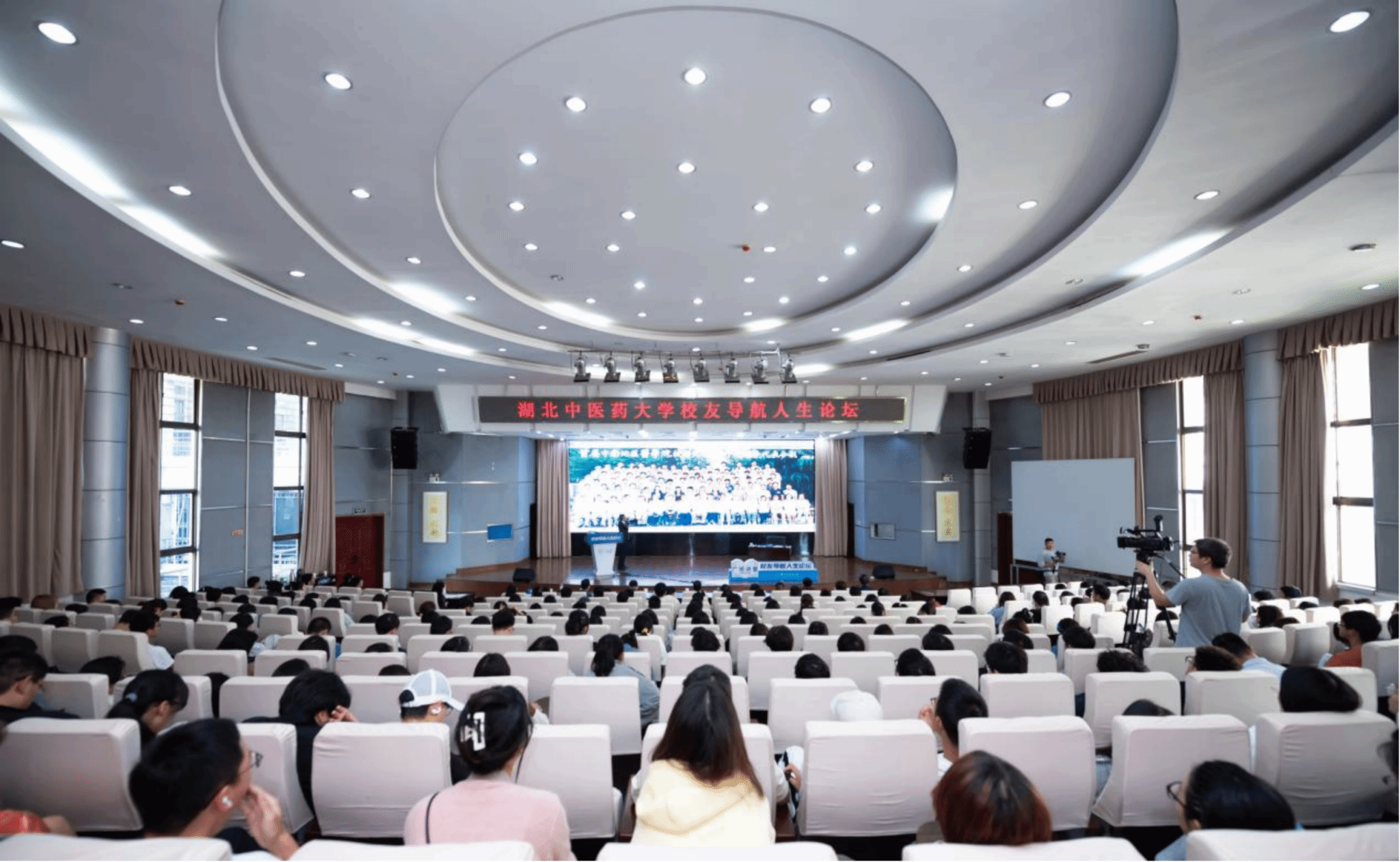 游洪涛以“湖北中医育学子 浓情师恩促奋进——新时代大学生的使命担当”为主题,用一张张珍贵的老照片开启了30年前的回忆,通过师生合影、学术交流、各种比赛现场照片等,将在母校求学期间激情燃烧的岁月娓娓道来。游洪涛表示,导师梁克玉教授,师兄邹季、室友王平对他的人生成长产生了很大的影响,感恩母校不仅教授专业理论知识,更重要的是培养了他开放创新和担当冒险的精神。触动他“下海”的初衷是,当时在医院工作期间,发现药品和医疗设备很多都是进口的,他立志一定要让老百姓吃得起药,并吃上放心药。他深情回忆,从租赁厂房到如今的上市公司,虽然创业经历了重重困难,遇到各种挫折,但是执着、坚韧的精神一直激励着他,让百姓吃上放心药的初心也一直鞭策着他。