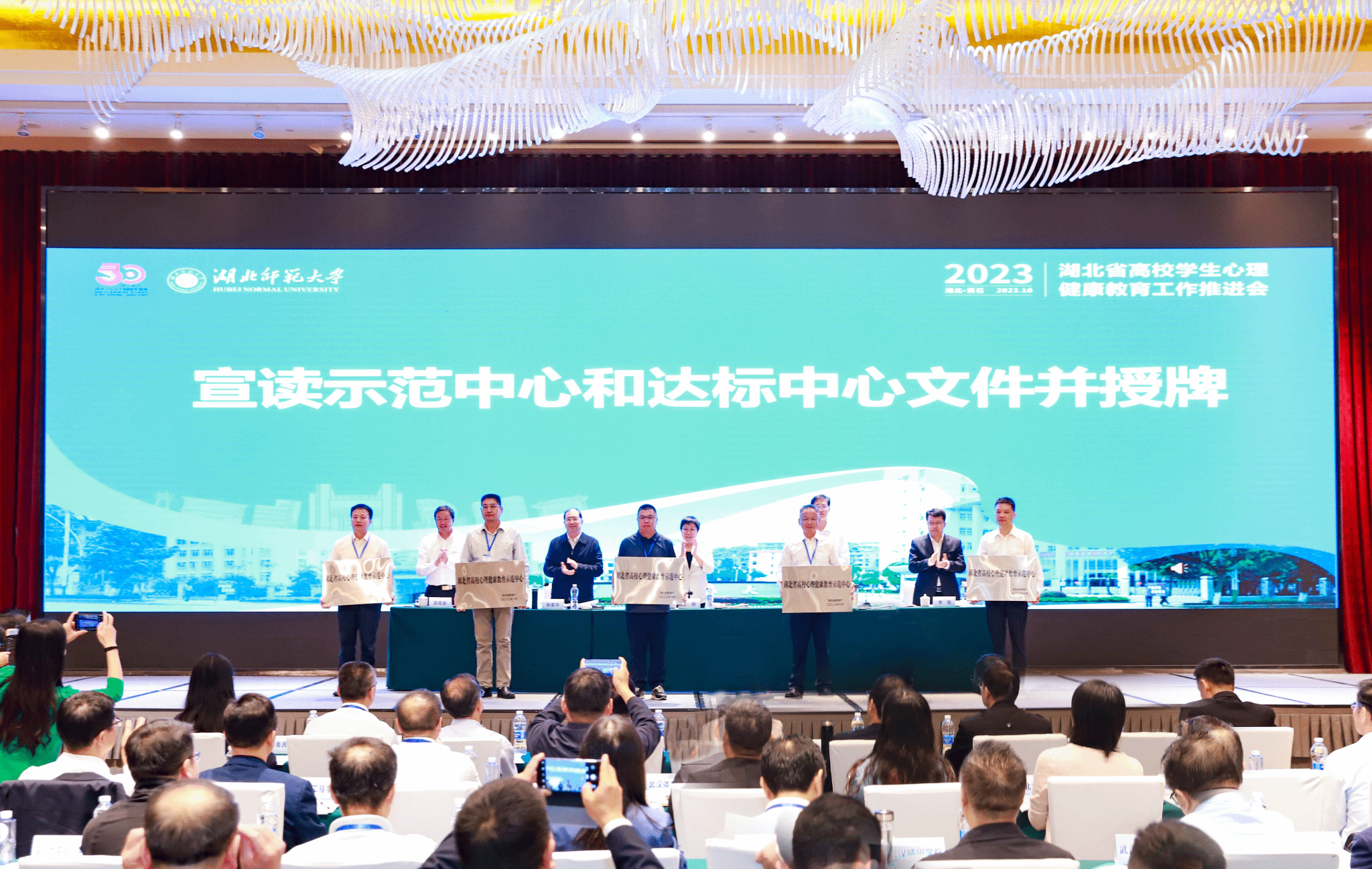 本网讯 10月19日,湖北省高校学生心理健康教育工作推进会在湖北师范大学召开。省教育厅党组书记、厅长周静出席会议并讲话,省委教育工委专职副书记、省教育厅党组成员张幸平主持会议。会议公布了湖北省高校心理健康教育示范中心和达标中心名单,我校获评“湖北省高校心理健康教育示范中心”,学生工作部负责人作为示范中心高校代表上台接受授牌。
