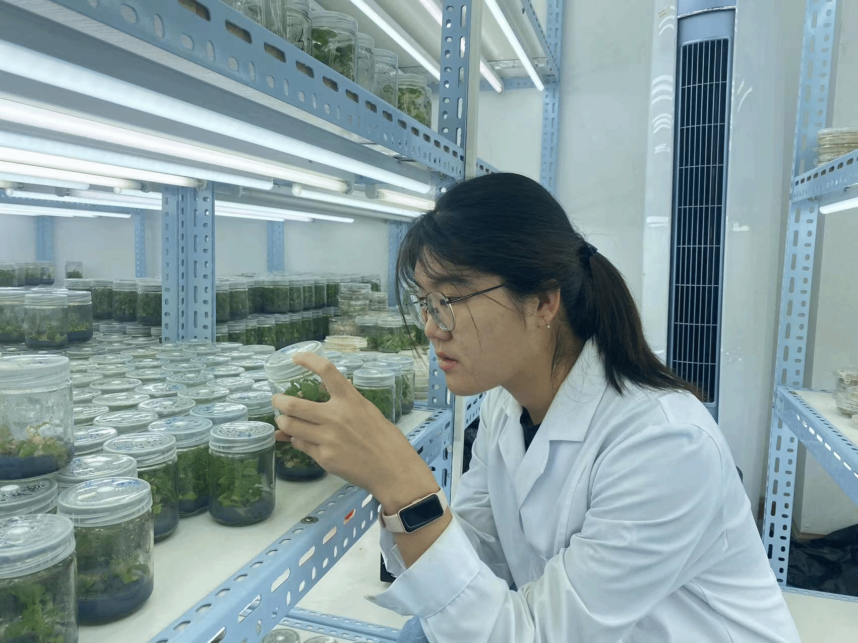 中药生态农业创新团队正在观察艾叶组培苗生长情况