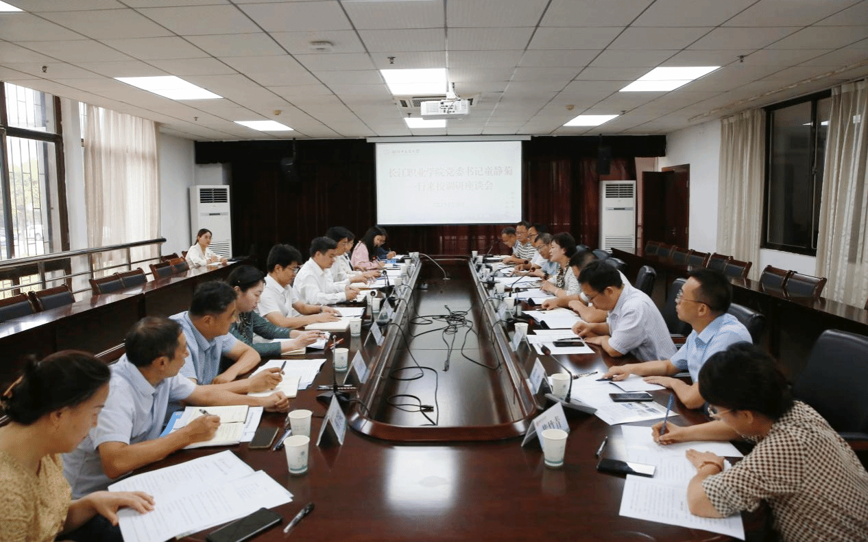 本网讯 9月28日,长江职业学院党委书记童静菊一行来校调研,就组建湖北省生物医药行业产教融合共同体进行专题交流座谈。座谈会在黄家湖校区明德楼A座一楼会议室召开,校长刘松林,副校长黄必胜,校党委常委曹继刚,学校办公室、党委宣传部、教务处、科发院、药学院有关负责人参加会议。座谈会由黄必胜主持。