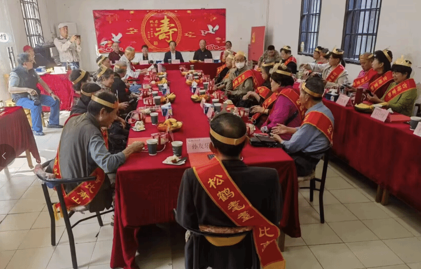 祝寿会上,校老年协会会长黄光焕首先宣读了年满70岁、80岁、90岁和100岁的68位寿星名单。涉老组织负责人现场为寿星代表佩戴生日绶带和生日帽。