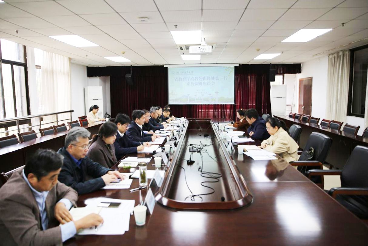 刘松林对省教育厅高教处来校调研指导表示欢迎,对省教育厅长期支持并关心学校工作表示感谢。他表示,崔锋处长一行的调研一是给学校鼓励,充分肯定学校的办学理念、发展方向及具体工作。二是对学校未来发展如何盯准强省建设、怎样把握机遇,指明了方向,明确了路径。学校将在接下来的工作中尽快跟进,提早谋划。三是对学校工作提出了具体要求,瞄准高端、夯实基础、守住底线既是基本原则也是对学校的更高要求。学校充分认清差距,将不断谋划推进发展,争取在全国赢得更多话语权,发出学校声音。夯实基础极其重要,特别是在本科教育教学审核评估工作中,学校坚持立德树人,把培养人作为最核心的工作来抓。底线必须坚守,在医药领域腐败问题集中整治过程中,省教育厅给予学校很多细致的指导,学校将按照省委和省教育厅的全面安排部署积极推进工作落实。