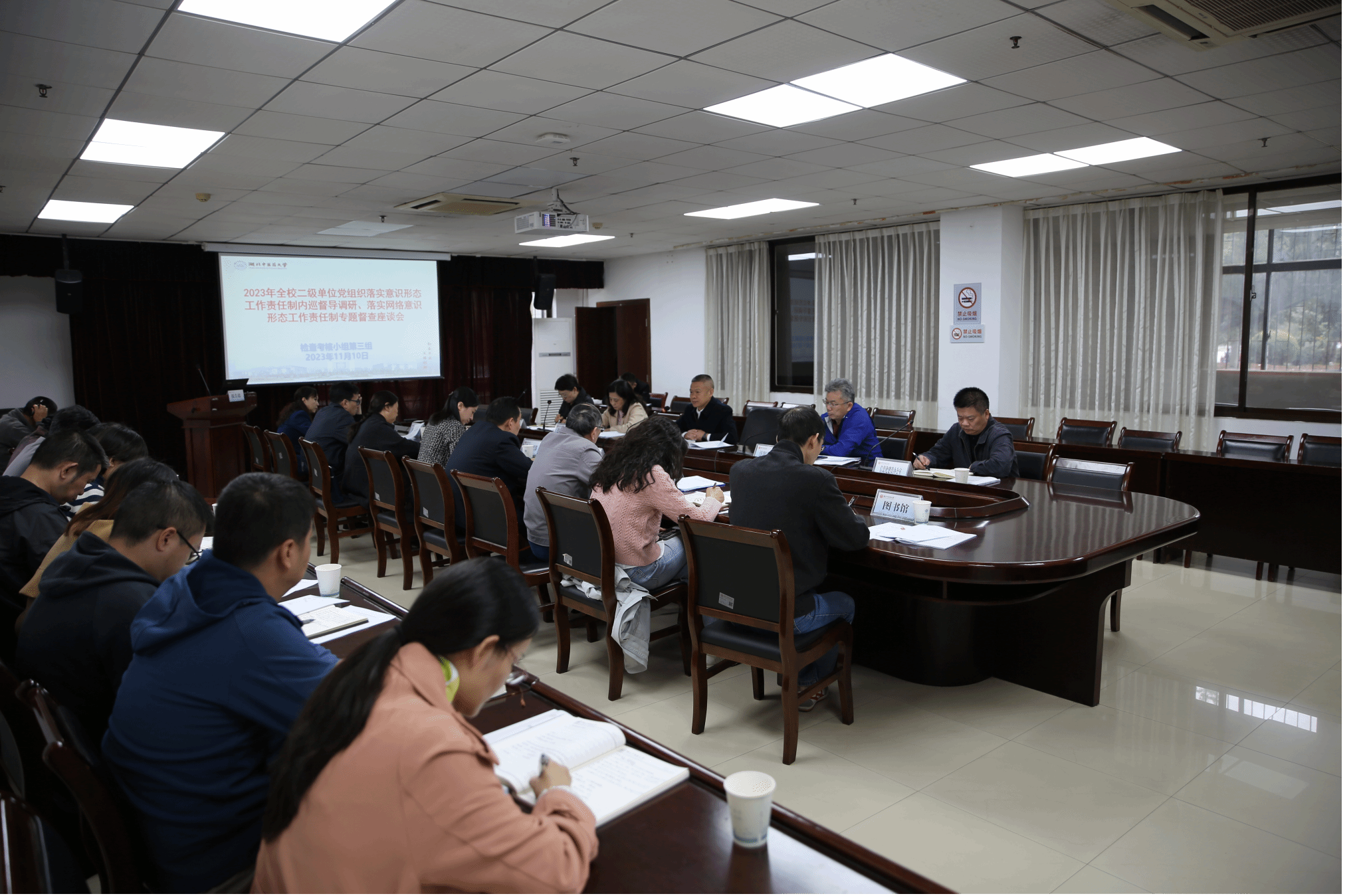 本网讯 为进一步推动全校各级党组织、各单位切实履行意识形态工作、网络意识形态工作责任,学校高度重视,意识形态工作责任制检查考核小组分三组,由校长刘松林,校党委副书记张子龙,校纪委书记、监察专员胡少萍带队,对2023年度二级单位党组织落实意识形态工作责任制情况、落实网络意识形态工作责任制情况进行全覆盖内巡督导调研和专题督查。11月3日至11月10日,检查考核小组先后召开三场督导调研、专题督查座谈会。