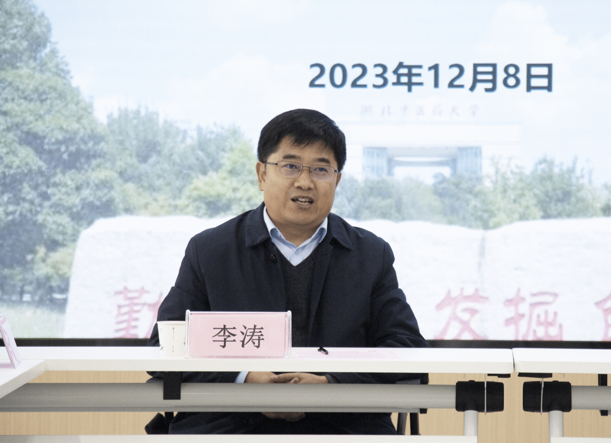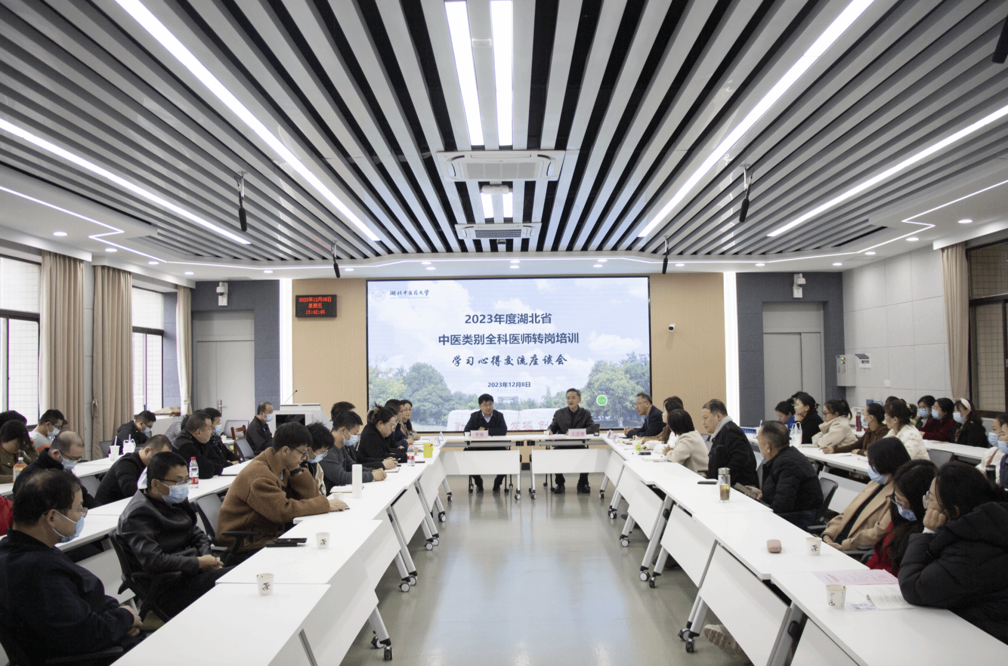 本网讯 12月8日,2023年度湖北省中医类别全科医师转岗培训班学员座谈交流会在我校黄家湖校区本草苑Y102举行。湖北省中医药管理局副局长李涛,校党委常委王彦春,第一临床学院、继续教育学院、附属医院市场发展处负责人,以及培训班49名学员参加座谈会。座谈会由王彦春主持。