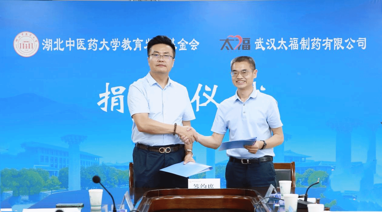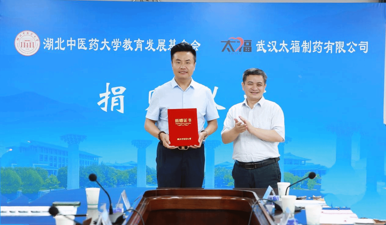 周治国介绍了武汉太福制药有限公司的基本情况。他表示,希望通过此次捐赠,在帮助部分家境贫困学生克服经济困难的同时,给予他们来自社会的关爱与温暖,助力他们追逐梦想、专注学业。周治国感谢湖北中医药大学为公司输送了许多高素质的毕业生,其中不少毕业生已成长为企业中层管理人员。高校是人才培养的主阵地,希望通过“武汉太福奖助学金”项目,点亮贫困学子的希望之光,助力学校培养更多基础理论扎实,科研创新和产业实践相结合的中医药学创新人才,共同促进湖北中医药产业发展。