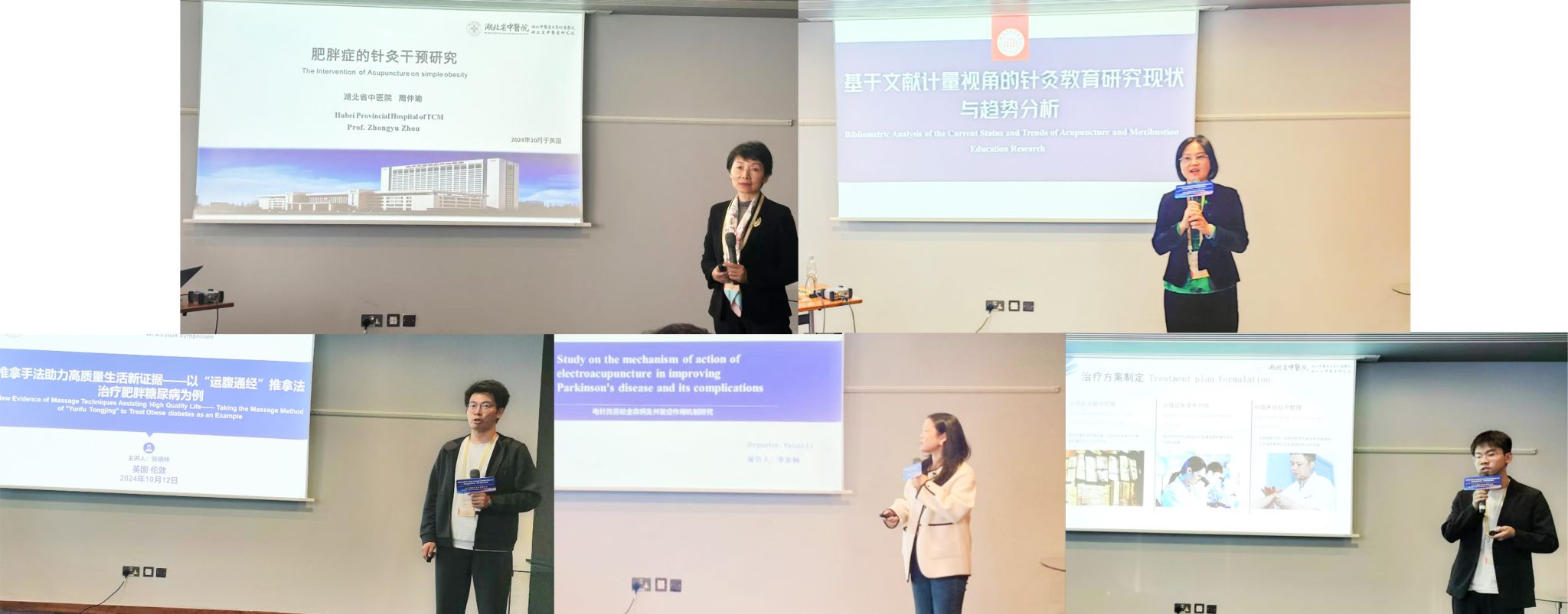本网讯 10月10日至14日,世界针灸学会联合会2024国际针灸学术研讨会(英国)会议举行。此次大会由世界针灸学会联合会、中国中医科学院共同主办,英国中医药学会、英国医学针灸学会承办,中国针灸学会等协办;湖北中医药大学、世界针灸学会联合会教育工作委员会承办国际教育与义诊适宜技术推广分会场,并获评优秀团体。岐黄学者、世界针灸学会联合会教育工作委员会主任委员、我校王华教授,附属医院针灸科周仲瑜教授,针灸骨伤学院杜艳军教授、张晓林副教授、李亚楠博士后、朱翘楚博士先后在会上作学术报告,马骏教授作学术壁报交流;王华教授和李亚楠博士后获评优秀会议论文。