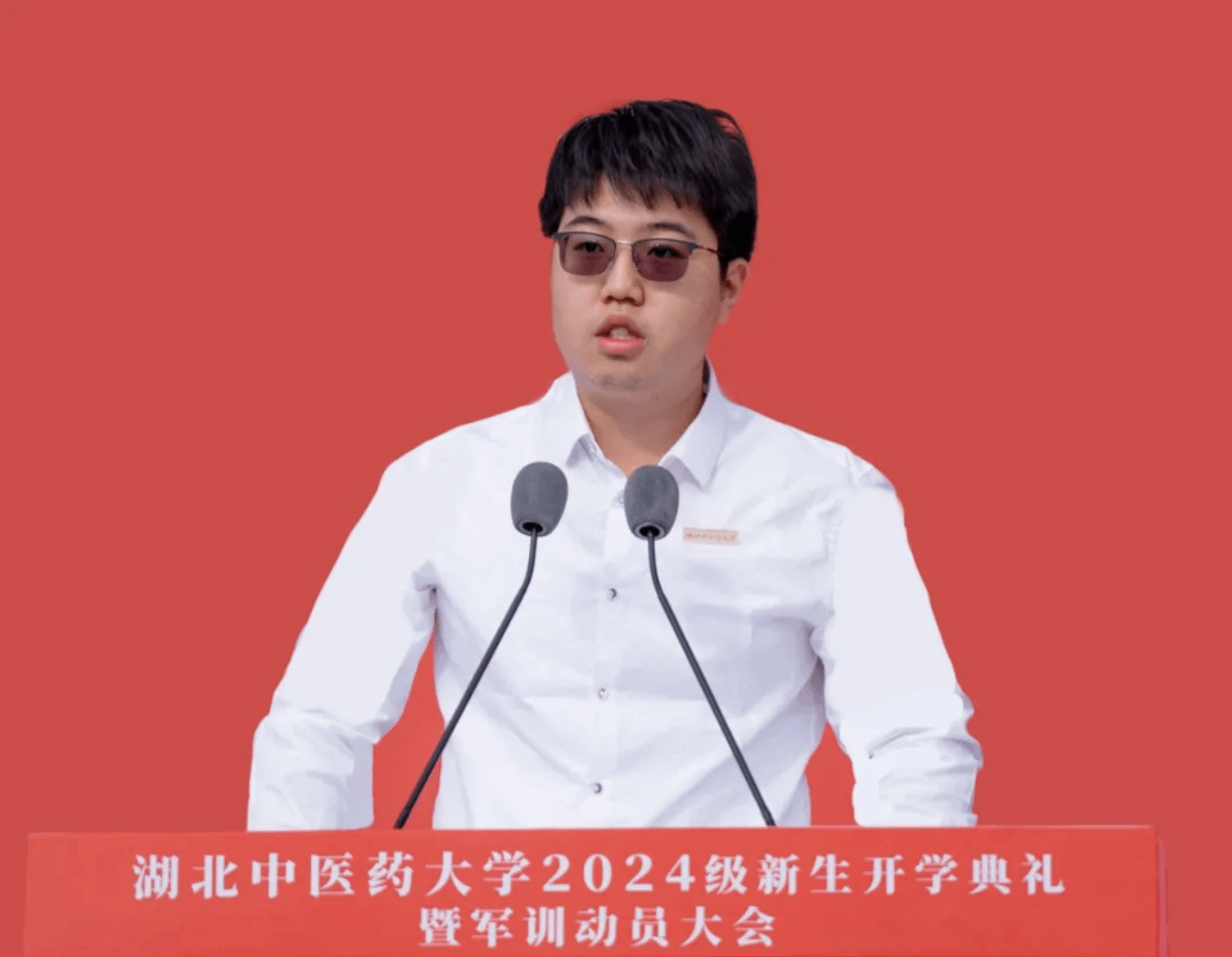 国家级大学生创新训练项目负责人、SCI论文发表者、中医学院2024级博士研究生刘尚志作为研究生新生代表,表达了对学校及中医药事业的无限热爱和坚定信念。