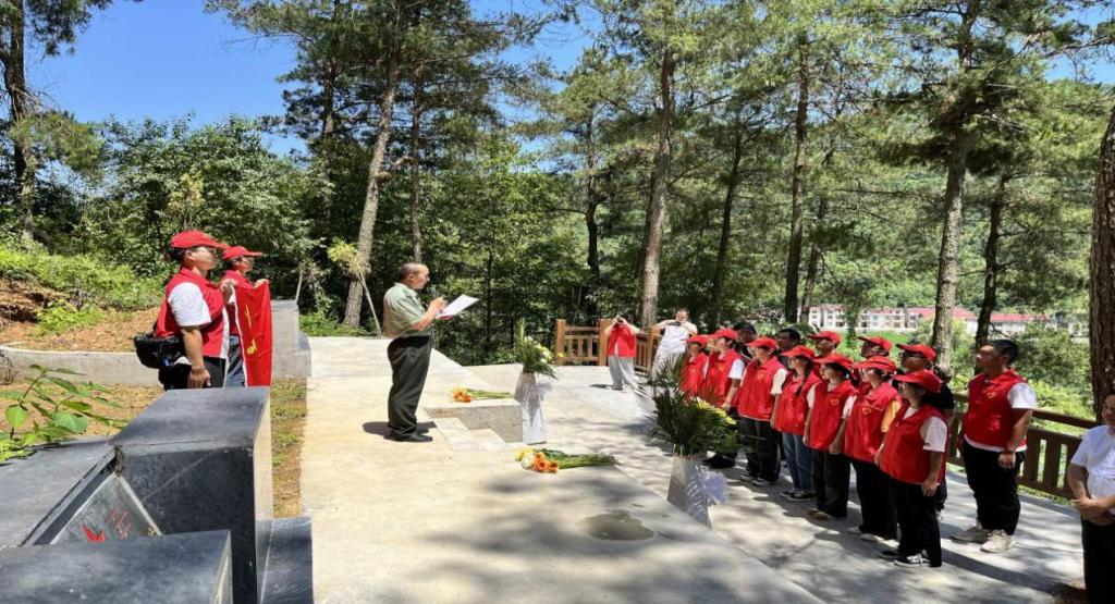 随后,实践团来到门古寺镇狮子岩烈士墓参观学习并开展主题党日活动。重温革命历史,缅怀革命先烈。大家纷纷表示,将不忘初心、牢记使命,传承红色基因,弘扬革命精神,汲取前进力量,提高医学素养,将个人理想信念融入中医药事业发展和中华民族伟大复兴的新征程上。