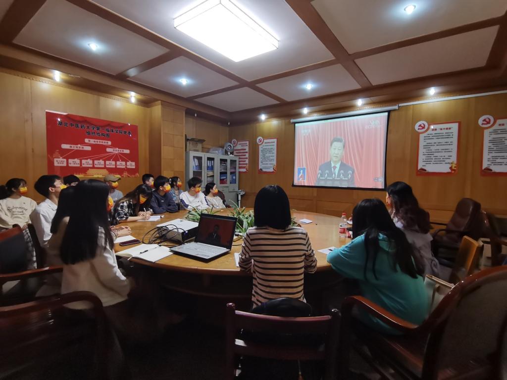 根据校党委统一部署,在严格遵守疫情防控有关规定的条件下,广大师生医护员工通过多种形式收听收看开幕会现场直播。附属湖北省中医院党委、各二级单位党组织设立分会场,组织领导班子、教职工代表、医护员工代表、学生党员代表、入党积极分子代表等在会议室、临床科室等场地集中收看。党委统战部组织民主党派、无党派人士和欧美同学会代表收听收看现场直播。学生工作部、研究生处以线上线下相结合的方式,组织学生在宿舍、教室、实验室、规培实训基地等地收听收看,共同见证这一伟大的历史时刻。校团委组织团学骨干在黄家湖校区图书馆七楼创业园展示厅内集中收看。离退休工作处组织离退休干部党员代表在昙华林校区集中收看。